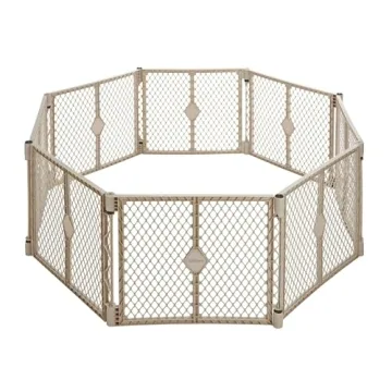 Show more The Toddleroo by North States Superyard 8 Panel Free Standing Play Yard is designed for parents and caregivers who want to create a secure yet engaging play space for their children. This impressive baby playpen stands 26 inches tall and stretches a generous 6.5 feet corner to corner, offering an expansive area of 34.4 square feet for your child to explore. Perfect for both indoor and outdoor use, this versatile playpen ensures heightened safety and comfort while your little one plays. Manufactured by a reputable American company since 1953, this play yard prioritizes both quality and safety for your family.