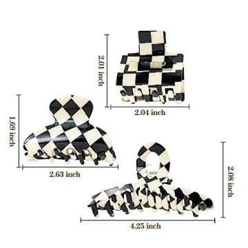 TODEROY Checker Claws Tortoise Barrettes Claw Clips for Women No-Slip Grip Lattice Design Hair Jaw Clips Clamp 80's Aesthetics Large Hair Accessories for Girls