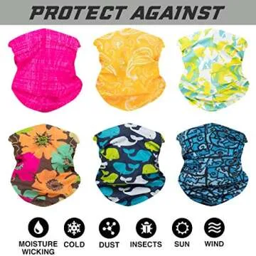Show more Discover the ultimate accessory for your outdoor adventures with the Toes Home 6PCS Outdoor Headband Elastic Seamless Bandana Neck Gaiter Scarf. Perfectly tailored for those with an active lifestyle, these versatile headwear pieces are designed to keep you comfortable and stylish, whether you are hiking, biking, practicing yoga, or just enjoying a day out in nature. Made with 100% polyester, they are not only soft and breathable but also sweat-wicking, ensuring you stay dry and cool even during the most intense workouts. The high stretch fabric caters to a head circumference of approximately 21.25 to 38.9 inches, making them suitable for everyone in the family. Plus, their lightweight and thin profile ensure they can be conveniently folded and stored in your pocket or travel bag, allowing for easy access wherever you go.