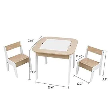 Toffy & Friends Wooden Storage Table and Chairs Set, White, 3-Piece Set, Ideal for Children's Learning, Activity Table or Dining