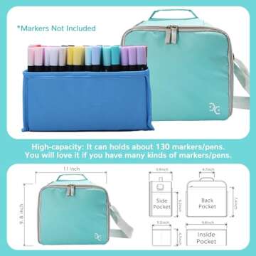 Togood Storage Tote Bag for Marker Pens Brush Pen Coloring Pencils Books Art and Crafts Supplies Tools Cosmetics, Up to 130 Pens,light green