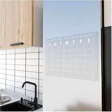 TOHERVIE Magnetic Acrylic Dry Erase Calendar Board for Fridge, 17"x12" Inches Clear Planning Board Planner for Refrigerator with 8 Colors Markers and Holder Eraser