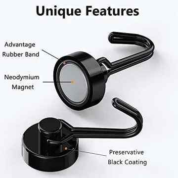 Show more Introducing our amazing Heavy-Duty Magnetic Hooks, specially designed for those who value both functionality and style. These hooks, crafted from top-quality neodymium magnets, offer a remarkable holding force of over 30lbs when used horizontally, and a robust 10lbs when used vertically. They're perfect for a variety of applications, from hanging aprons and towels to securely holding heavy tools, ensuring nothing slips from your grasp.