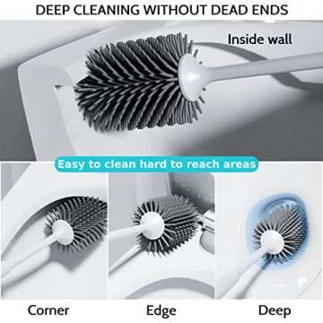 EYBEER Toilet Brush Set - 3 Pack with Holder & Silicone Bristles for Efficient Bathroom Cleaning