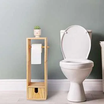 If you're looking to elevate your bathroom aesthetic while enjoying practical storage, look no further than this exquisite free-standing toilet paper holder. With its charming design and real wood construction, this item not only serves as a functional bathroom accessory but also enhances your decor. The natural texture of the wood brings a warm and inviting ambiance to your space.