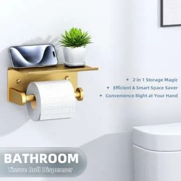 Introducing the revolutionary Toilet Paper Holder with Phone Shelf, brought to you by APLusee, this premium bathroom accessory is crafted from top-of-the-line SUS 304 stainless steel with a stunning brushed gold finish. Designed to elevate both functionality and aesthetics, this holder seamlessly integrates into any modern bathroom decor. Featuring a clever phone shelf with upward baffle design, it ensures that your essential items remain securely stored while providing convenient...