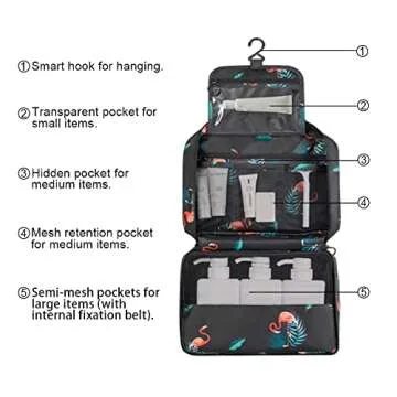 Another standout feature is the built-in sturdy hook, allowing you to effortlessly hang the bag on towel racks, shower rods, or coat hooks. This smart design saves counter space and keeps your belongings accessible while making your room look organized.