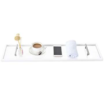 In addition to its aesthetic appeal, practical features abound with this bathtub shelf. The easy-to-clean surface ensures that maintenance is effortless, and its sturdy build means that you can safely place your drinks, devices, and bath essentials without worry. Reviews rave about its upgraded performance compared to traditional wood or metal options, highlighting the non-slip experience that allows you to effortlessly compartmentalize your items for an orderly and indulgent bath.