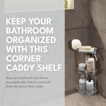 ToiletTree Products Stainless Steel Floor Shower Caddy - Corner Caddy Shelf for Bathroom and Shower Storage - Rust-Proof Shower Caddy for Shampoo, Soap, and More