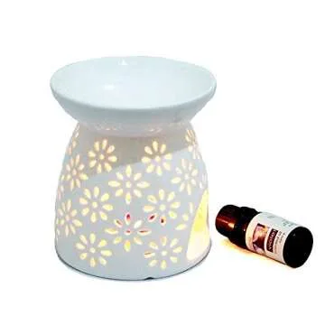 ToiM Vase Shaped Milk White Ceramic Hollowing Floral Aroma Lamp Candle Warmers Fragrance Warmer Oil Diffuser Essential Oil Lamp Aromatherapy Furnace Ceramic Incense Burner Wax Melt Warmer (White)