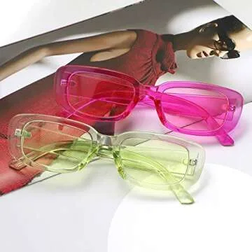 Tokaoat 2 Pack Rectangle Sunglasses for Women- Vintage Sunglasses 90s Sunglasses for Women Retro Pink and Green