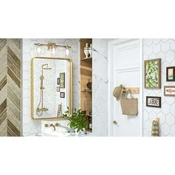 TokeShimi 20 x 30 Inch Gold Bathroom Wall Mirror Vanity Metal Frame Round Corner Rectangular for Home Decor Living Room Entryway (Horizontal/Vertical)