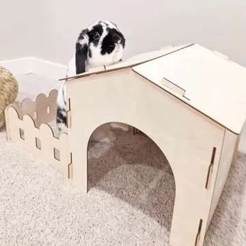 Whether you are looking for a place for your little one to relax or looking to enhance the living space of your pet, this rabbit house is the answer! Treat your furry friend to a stylish and comfortable hideout today. Your bunny deserves the best!