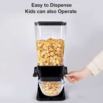 Tokokimo Cereal Dispenser, Cereal Dispenser Countertop, Cereal Containers Storage, Food Dispenser for Grains, Nuts, Candies, Oatmeal, Snacks, Cat Food, Dog Food, Black, 2pc