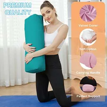TokSay Yoga Bolster Pillow for Restorative Yoga - Meditation Pillow with Velvet Cover, Filled with Soft Cotton (Green)