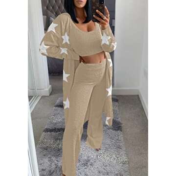 Show moreIntroducing the TOLENY Women 3 Piece Fuzzy Sets Loungewear, a perfect blend of comfort and style designed to elevate your lounging and casual outings. This ensemble features a luxurious sherpa coat, a chic tank top, and soft wind leg pants, all crafted from high-quality materials that provide a snug and cozy fit. The beautiful khaki color adds versatility to this tracksuit, making it ideal for a range of occasions. Whether you're relaxing at home or stepping out for errands, this loungewear set seamlessly combines fashion with function.