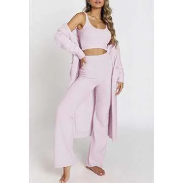 The tank top features adjustable straps and a flattering silhouette, while the wide-leg pants ensure maximum comfort and freedom of movement. The cardigan jacket is the perfect finishing touch, adding warmth while keeping your look effortlessly chic. With its loose fit and breathable fabric, this loungewear set is ideal for lounging, sleeping, or even a laid-back outing.