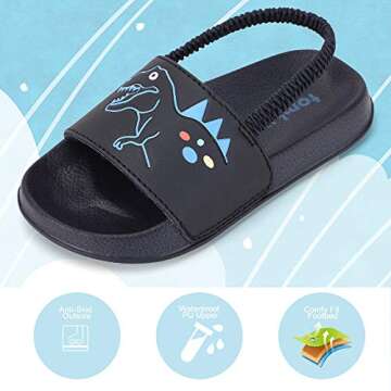 Tombik Toddler Sandals - Boys Pool Slipper Slides Kids Water Shoes for Beach Navy/Dinosaur 7-8 US M Toddler