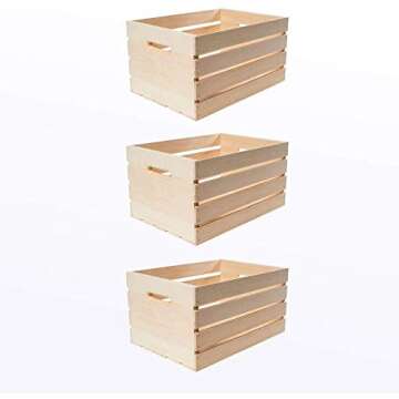 Show more Introducing the exceptional BiChengJie Storage Crates, designed to combine functionality with superior craftsmanship. Made from top-quality wood, these durable crates offer a beautiful finish that can be easily painted or stained to match your home decor. With their smooth cut-out handles, they provide easy maneuverability and stylish storage solutions for various applications around the house.