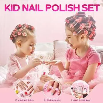 Show moreIntroducing the TOMICCA Kids Nail Polish Set - the ultimate creative outlet for little girls ages 5 and up! This delightful kit features 10 dreamy colors that are perfect for any occasion, whether your little fashionista wants to rock soft pastels at a birthday party or flashy colors for a fun playdate. Formulated with natural ingredients, this water-based nail polish is not only non-toxic and virtually odorless, ensuring a safe experience, but it also allows your child to express her creativity with vibrant and sophisticated hues. With TOMICCA, every application is effortless and fun!