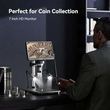 TOMLOV DM9 7" LCD Digital Microscope 1200X, 1080P Coin Microscope Magnifier, 12MP Ultra-Precise Focusing Soldering Microscopes for Adult, PC View, 32GB