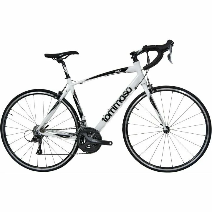 Show moreExperience top-level performance with the Tommaso Imola Sport Bike, a high-quality road bicycle designed for both men and women. Built with an aluminum frame and Shimano Claris 24-speed gear system, this road bike ensures smooth and efficient rides, making it perfect for city commutes, racing, and long-distance cycling. The 58cm large frame is suitable for a range of adult heights, ensuring comfort and proper fit for various riders. The bike's modern design and sleek white finish make it a stylish choice for any cyclist. Equipped with responsive shifters and reliable brakes, you can navigate any terrain with ease and confidence. While the stock tires and seat may not be perfect for high-mileage riders, these components can be easily upgraded to enhance your riding experience. The Tommaso Imola offers exceptional value for its price, providing a competitive alternative to higher-end bikes without compromising on quality.