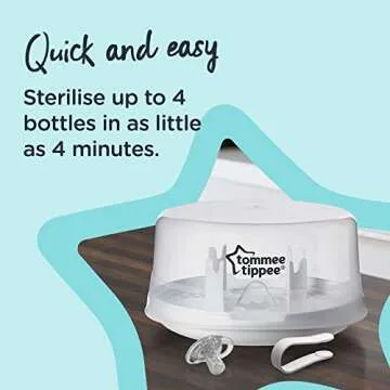 Tommee Tippee Microwave Steam Sterilizer for Baby Bottles and Accessories, Kills Viruses and 99.9% of Harmful Microbes, 4-Minute Sterilisation Cycle