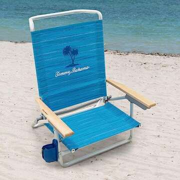 Tommy Bahama 5-Position Lay Flat Cup Holder and Towel Bar Beach Chair, 1-Pack, Logo Stripe