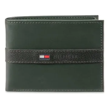 Show more Discover unparalleled style and functionality with the Tommy Hilfiger Men's Leather Wallet – a sleek slim bifold that is not only aesthetically striking but also impressively practical. Crafted from premium genuine leather in a stunning dark green hue, this wallet is designed to elevate your look while keeping your essentials in order. Ideal for the modern man, it combines classic design with innovative features to provide you with a wallet that you will cherish for years to come.