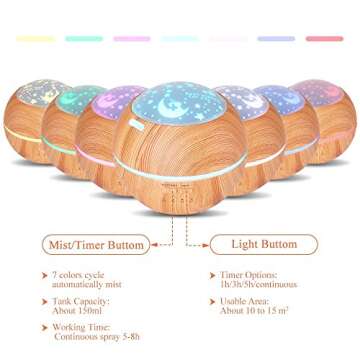 TOMNEW 150ML Aromatherapy Diffuser Ultrasonic Essential Oil Diffuser Kids Room Fragrance Mini Aroma Humidifier Wood Grain Waterless Auto Shut-Off and 7 Color LED Lights Changing for Home Baby (Brown)