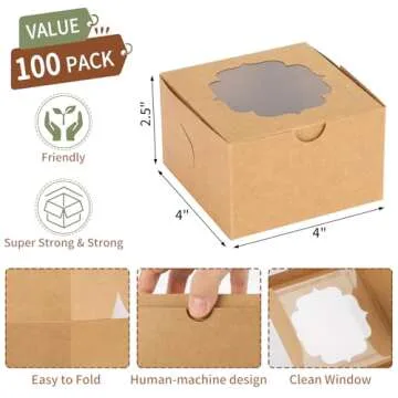 TOMNK 100pcs Cookie Boxes, 4x4x2.5 Inch Small Bakery Boxes for Cupcakes Chocolate Strawberries Muffins, Brown