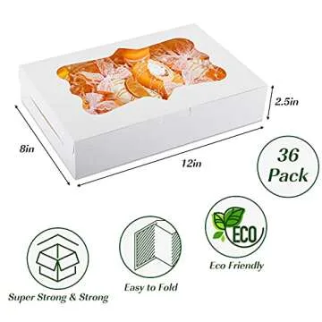 TOMNK 36pcs Bakery Boxes, 12x8x2.5 Inches Bakery Boxes with Window, Cookie Boxes Dessert Boxes with Window Pastry Boxes Cajas Para Postres for Chocolate Covered Strawberries, Cookies, Muffins, Donuts