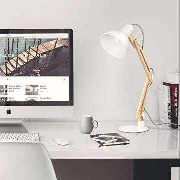 Tomons Swing Arm LED Desk Lamp, Wood Designer Table Lamp, Reading Lights for Living Room, Bedroom, Study, Office, Bedside Nightstand Lamp with 4W LED Bulb - White