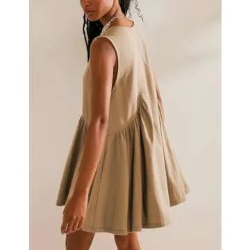Tomosc Mini Dress for Women 2025 Summer Casual Sleeveless V Neck Sundress Loose Babydoll Dress with Pockets (2S-Khaki-S)