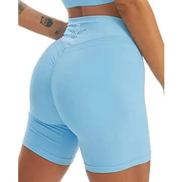 TomTiger Yoga Shorts for Women Tummy Control High Waist Biker Shorts Exercise Workout Butt Lifting Tights Women's Short Pants (Blue, M)