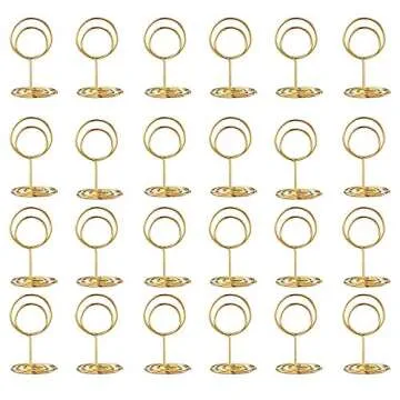 Introducing the **Toncoo 24 Pcs Premium Mini Table Number Holders**, crafted from high-quality metal that promises durability and charm. Each mini holder is designed not only to be sturdy but also to inject a touch of elegance into any setting. With a cute yet sophisticated aesthetic, these table number holders are perfect for important occasions like weddings, birthdays, and corporate events. The stylish gold finish adds a romantic flair, ensuring that every table setting becomes a memorable experience.
