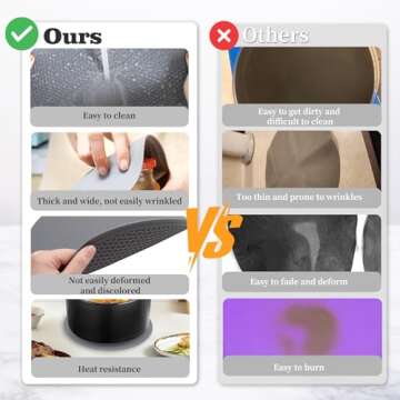 This mat is not just about size; it's built to withstand extremes with its heat resistance, capable of tolerating temperatures from -40 to +446℉ (-40 to +230℃). This feature allows you to protect your kitchen countertops from hot damage, scrapes, and spills, making clean-up a breeze and keeping your furniture safe.