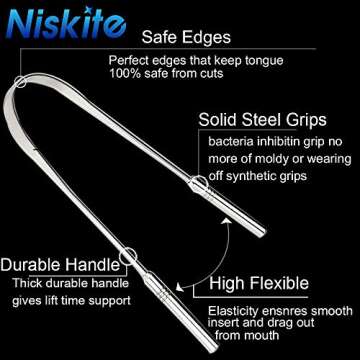Tongue Scraper Cleaner,Niskite Professional Surgical Grade Stainless Steel Tounge Scraper Brush For Adult and Kids