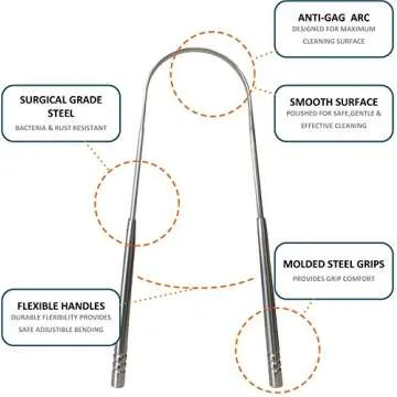 Tongue Scraper - Surgical Grade Stainless Steel Tongue Cleaner - Non-Synthetic Grip - Pack of 2 - Includes Tin Metal Travel Case.