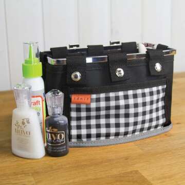This Table Tidy features two spacious pockets, allowing you to store essential tools such as scissors, pens, and more. Not only does it keep everything at your fingertips, but it also enhances your productivity, providing a clean and structured approach to your crafting endeavors. Measuring 6.0 inches in length, 8.0 inches in width, and 5.0 inches in height, this tidy is lightweight at just 0.66 lb, making it easy to move around your crafts space as needed. Its compact size doesn’t compromise on capacity, ensuring that you have everything organized in one convenient location.