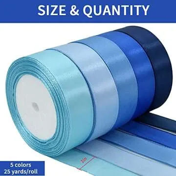 Show moreTransform your crafts and special occasions with the TONIFUL 1 Inch x 125 Yards 5 Colors Satin Ribbon Rolls. This exquisite collection features five captivating shades of blue, designed to spark creativity and add a romantic touch to your projects. Each roll is approximately 25 yards long, combining elegance and versatility.