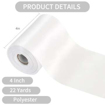 Show moreIntroducing the versatile TONIFUL 4 Inch Wide White Solid Satin Ribbon, a must-have addition for all your creative projects and celebrations. Measuring an impressive 22 yards long and 4 inches wide, this double-faced fabric ribbon is designed to elevate your decorating game. The ribbon's exquisite satin finish ensures it shines beautifully under any lighting, making it perfect for weddings, parties, or any festive occasion. Crafted from 100% polyester, it is both durable and soft, giving you the flexibility to use it for various applications without worrying about fraying or fading.