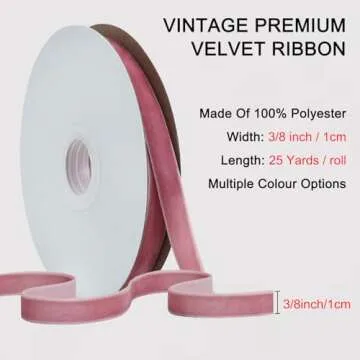 Show more Introducing the perfect touch for your festive occasions, our luxurious vintage premium velvet ribbon is designed to elevate your decor and gift packaging experience. Made from high-quality materials, this ribbon provides a smooth and tactile experience that is both visually appealing and practical for various uses. With a stunning size of 3/8 inch x 25 yards per roll, each ribbon ensures you have ample length for all your crafting needs. No splices or rough edges here; this ribbon is continuous, offering seamless beauty in every application.