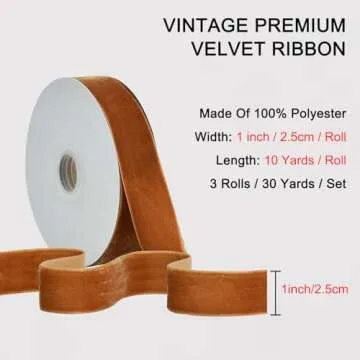 Show more This exquisite Luxurious Velvet Ribbon brings an unparalleled touch of elegance and charm to any decor or gift packaging. Constructed from premium velvet, it not only adds to the visual appeal but also enhances the tactile experience as you wrap your gifts. With a size of 3/8 inch x 25 yards per roll, each ribbon is crafted to be continuous and smooth, ensuring a flawless finish free of splices. Available in a remarkable array of vibrant colors, this solid velvet ribbon meets all your creative needs with its durability, washability, and non-fading properties.