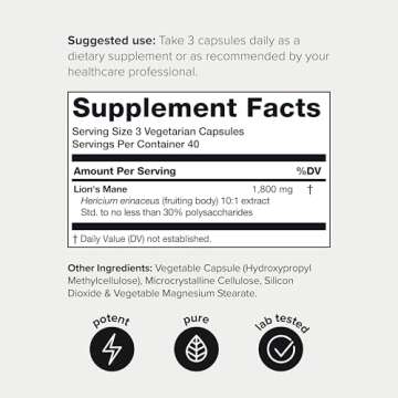 Crafted entirely from the pure fruiting bodies of the Lion’s Mane mushroom, this supplement offers a level of potency that is hard to match. The polysaccharides found in these mushrooms are renowned for their health-promoting effects, setting a new standard in the realm of cognitive enhancement. With a 10X concentration compared to competing products, Toniiq's Lion's Mane stands out as one of the most effective choices on the market.