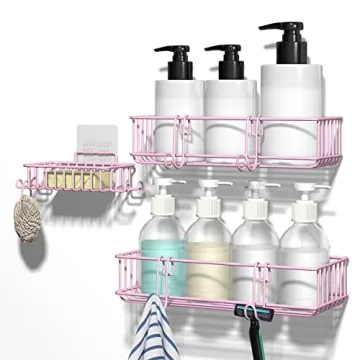 Show moreTransform your shower space with the TONLEA Shower Caddy, the ultimate solution for achieving an organized and stylish bathroom. This beautifully designed 3-pack shower organizer is crafted from rustproof stainless steel, ensuring superior durability while denying any worries of rust or damage over time. With its stunning pink finish, the caddy not only captivates the eye but also complements a variety of bathroom aesthetics, making it a perfect choice for those who value both functionality and style in their home decor. Each shelf features multiple hooks, allowing you to hang your favorite shower accessories and toiletries within reach, enhancing your daily bathing experience.