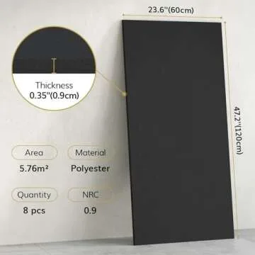 TONOR 8PCS Acoustic Panels, 47.2″ x 23.6″ x 0.35″, Full Self-Adhesive Soundproof Wall Panels, Sound Absorbing Panels for Noise and Echo Reduction, Acoustic Treatment for Studio, Home, Office, Black