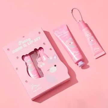TONYMOLY x Squishmallow Valentine Patty the Cow 2 PC Hand Cream & Lip Gloss Set, Strawberry Hand Cream, Strawberry Shortcake Lip Gloss