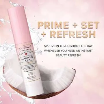 Too Faced Hangover 3-in-1 Primer & Setting Spray | Long Lasting + Hydrating, Travel Size, 1 Fl Oz, Clear