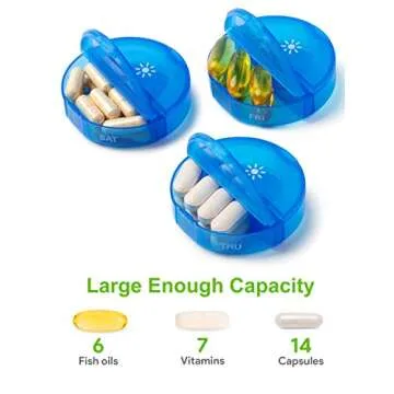 Show moreIntroducing the TookMag Pill Organizer 2 Times a Day, your ideal travel companion for keeping your vitamins, fish oils, and supplements organized! Designed with an impressive large capacity that comfortably holds up to 8 fish oil pills, this pill organizer proves that convenience and organization can go hand in hand. Measuring about the size of your palm, it fits easily into any purse or pocket, making it perfect for those on the move who need to maintain their health regimen.